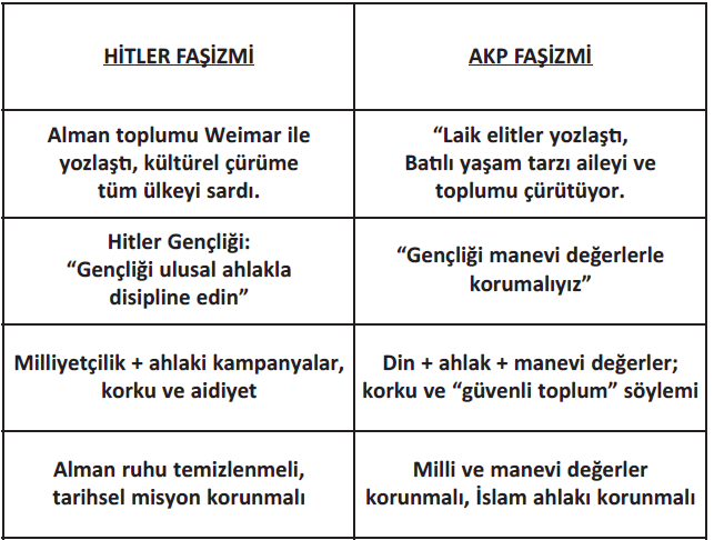 Bu noktada artık: Kriz konuşulmaz, kendi çıkarlarıiçin yönetilir. Bu konuda Hitler faşizmi ile AKP faşizminin benzerliğine tekrar dikkat çekiyoruz.