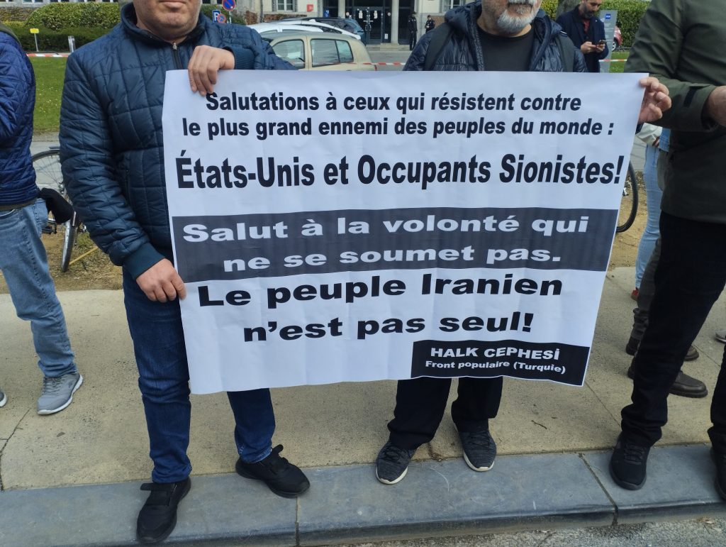 Avrupa’nın farklı şehirlerinde eş zamanlı olarak yapılan İranla dayanışma eylemlerinden biri de Fransa’da gerçekleştirildi. ABD emperyalizmini ve İsrail Siyonizmini protesto etmek; aynı zamanda İran halkının yanında olduklarını göstermek amacıyla, Fransa’da Anti-Emperyalist Cephe ve Halk Cephesi, İran Büyükelçiliği önünde eylem yaptı.