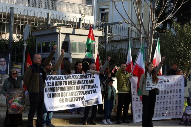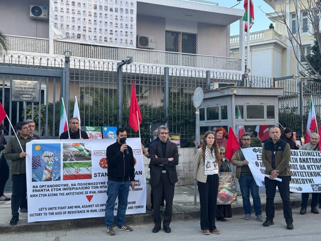 YUNANİSTAN ATİNA – Anti-Emperyalist Cephe ve Halk Cephesi (Türkiye) çağrısıyla 31 Mart Salı günü Atina’daki İran Büyükelçiliği önünde anma yapıldı ve İran yürüyüşü için çağrı yapıldı.