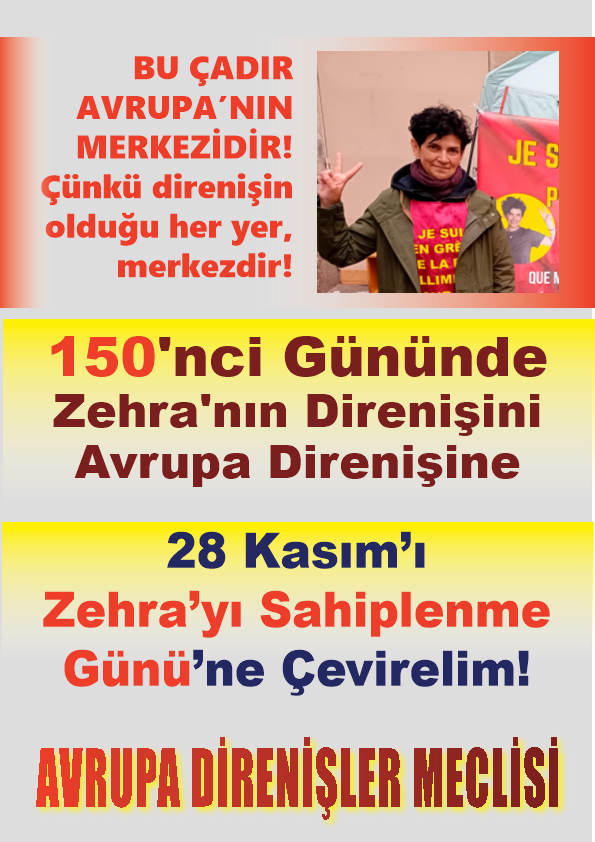 28 Kasım’da Zehra’nın Direniş Çadırı, AVRUPA’NIN MERKEZİ’dir. Çünkü nerde bir direniş varsa, orası dünyanın, Avrupa’nın merkezidir.
