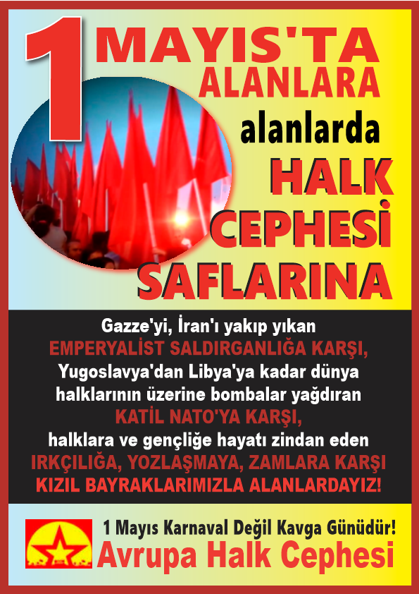 Avrupa’daki 1 Mayıs kutlamalarına ilişkin Avrupa Halk Cephesi tarafından bir çağrı yayınlandı. “Neden ve neye karşı 1 Mayıs alanlarında olmalıyız?”