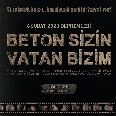 Halil Yakut yaptığı açıklamada “Belgeseller yaşananları tarihe belgelemek için yapılır. Biz de bunu yaptık. Depremzede halka mikrofonu uzattık. Halk anlattı. İşte tam da bu yüzden Beton Sizin Vatan Bizim belgeselimiz halkın belgeselidir. Belgeselimizi var eden halkın kendisidir. Belgeselimiz gücünü halkın tarihsel ve siyasal haklılığından alıyor. Ve yine bu yüzden; Beton Sizin Vatan Bizim belgeselimiz engellenemez!”dedikten sonra “Tüm halkımızı, aydınları, sanatçıları Beton Sizin Vatan Bizim belgeselimizi izlemeye ve izletmeye, sahiplenmeye çağırıyoruz!BETON SİZİN VATAN BİZİM! ” ifadelerine yer verdi. BETON SİZİN VATAN BİZİM!