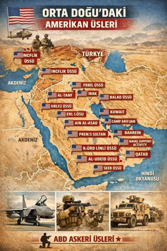 Suudi Arabistan, BAE vb. ülkelerdeki ABD üsleri, emperyalist sermayenin ileri karakollarıdır. Bu üsler, petrol yollarını, enerji rotalarını ve bölgesel hegemonyayı güvence altına alıyor.