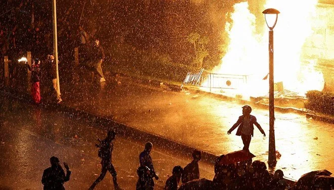 Öfkeli halkın eylemlerinde polis karakolları ve bazı kamu binaları ateşe verildi.