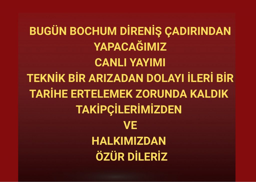 BUGÜN BOCHUM DİRENİŞ ÇADIRINDAN YAPACAĞIMIZ CANLI YAYIN