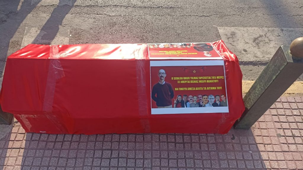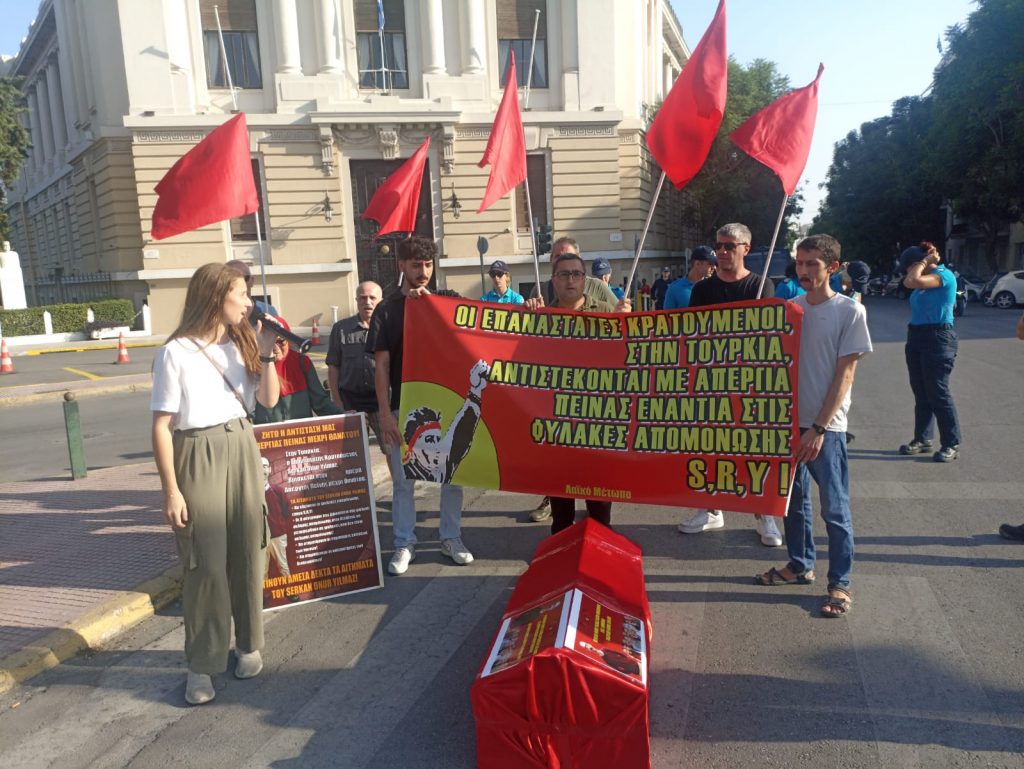 Yunanistan Halk Cephesi 22 Ağustos Cuma günü S,R,Y kuyu tipi hapishanelere karşı Atina’da bulunan Türkiye Büyükelçiliği önünde tabut bırakma eylem gerçekleştirdi.