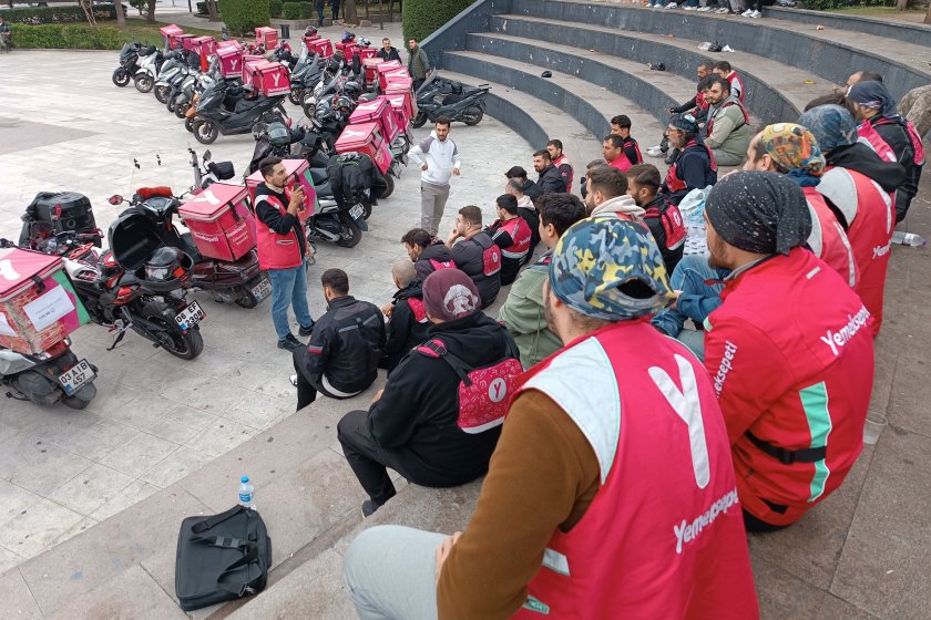 YEMEKSEPETİ KURYELERİ İŞ BIRAKARAK MEYDANA ÇIKTILAR