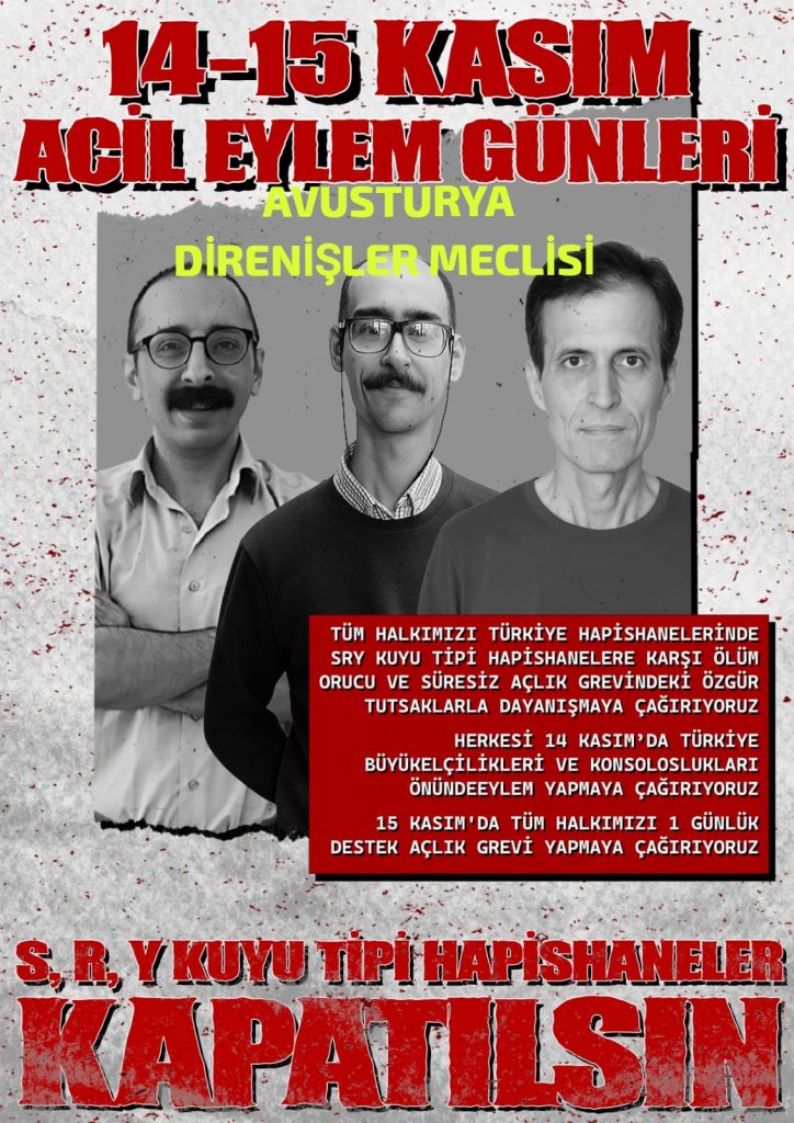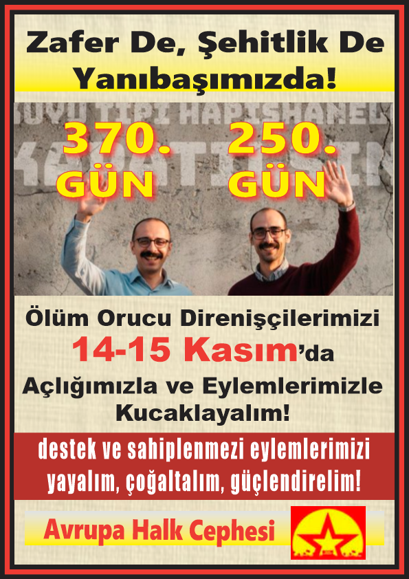 Anti-emperyalist Cephe, Avrupa Halk Cephesi ve TAYAD’lı Ailelerin çağrısıyla, 14-15 Kasım tarihleri, eylem günleri ilan edilerek, bu günlerde destek eylemlerinin yaygınlaştırılması istendi.