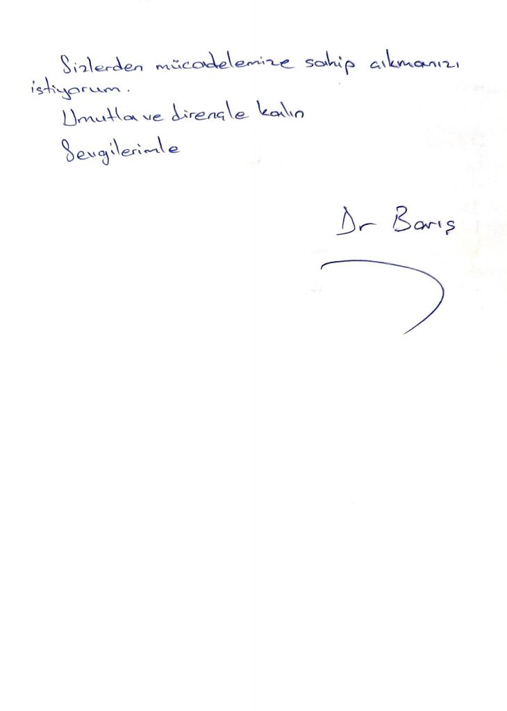 Aşağıda Dr. Kaya’nın yazdığı bir mektup var.