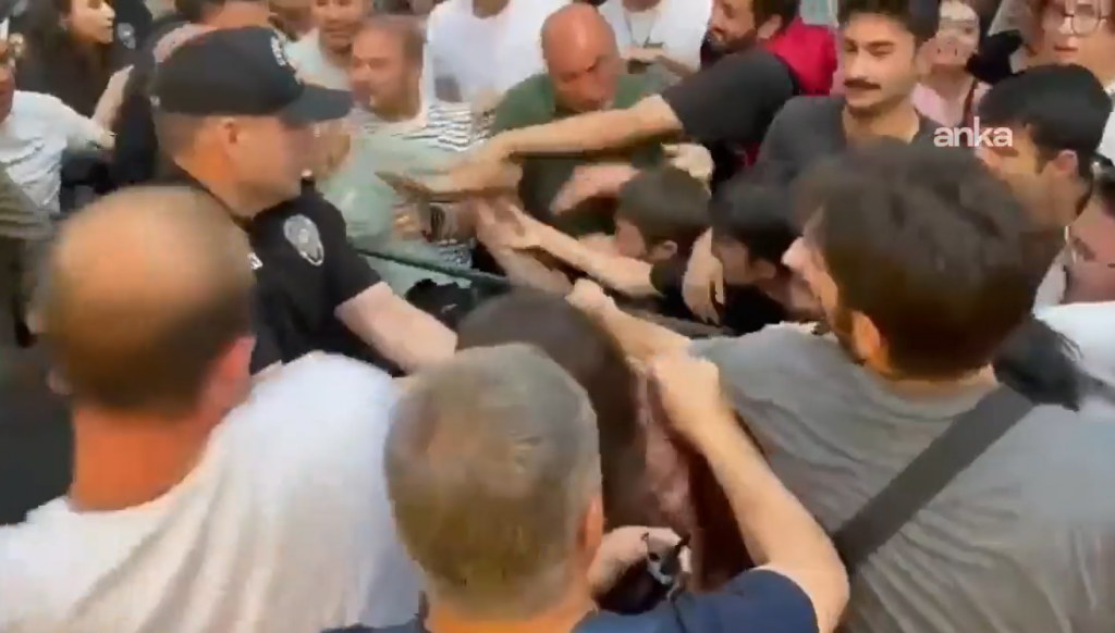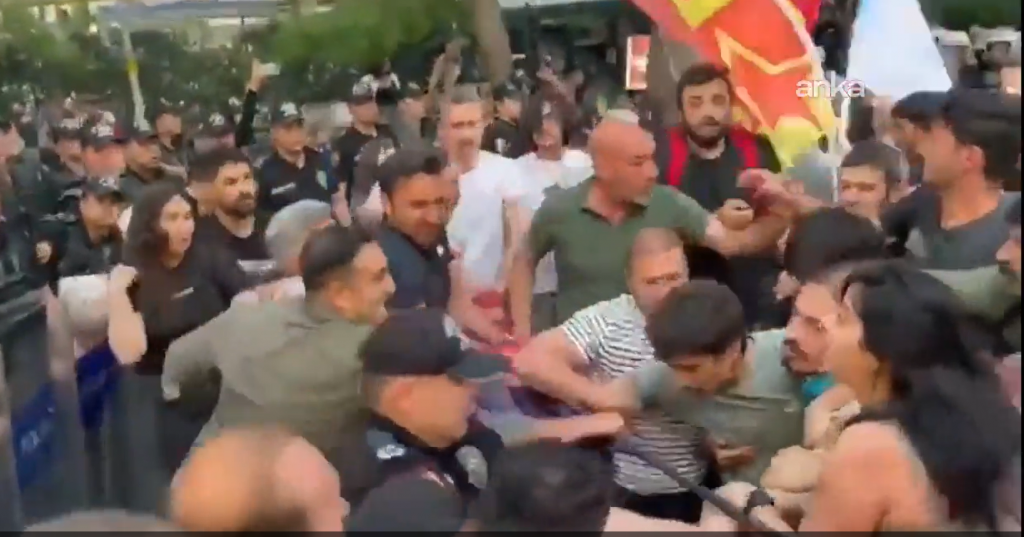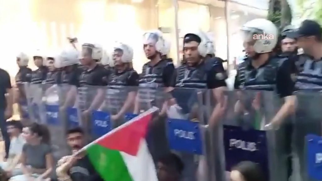 Eyleme AKP’nin polisi gözü dönmüşçesine saldırdı. Saldırı sırasında polis ekipleri bazı eylemcileri gözaltına aldı. Gözaltılarda polisin işkence yapması da ayrıca Filistin meselesinde AKP faşizminin ikiyüzlülüğünü teşhir edenlere karşı tahammülsüzlüğünün tezahürüydü…