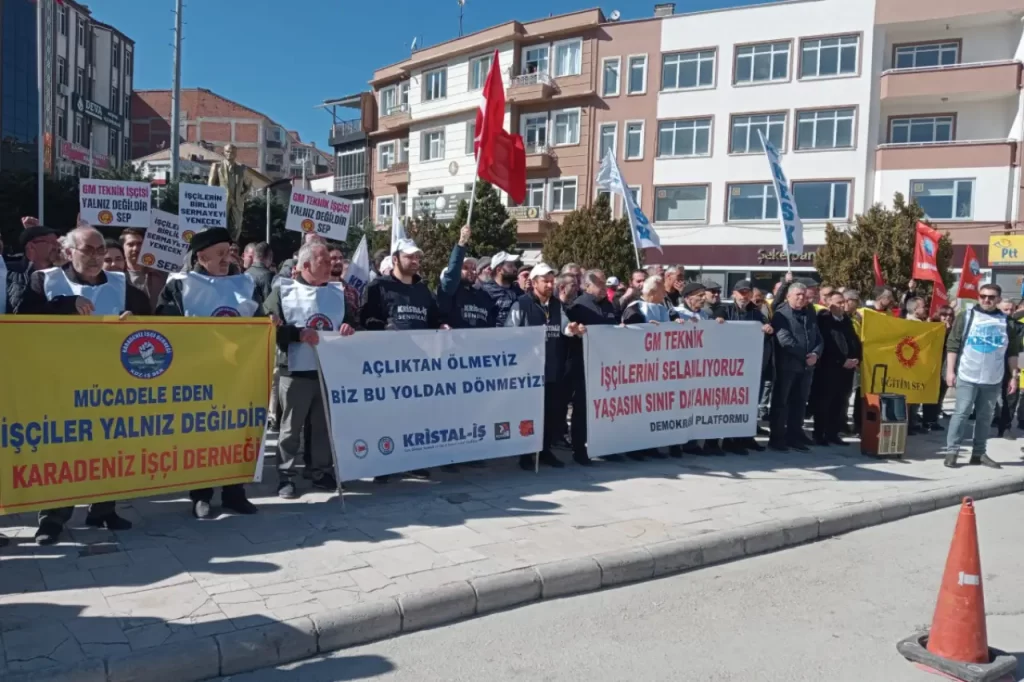 Kristal-İş üyesi GM Teknik işçileri, Amasya Demokrasi Meclisi ve Karadeniz İşçi Derneği üyeleri fabrika önünde bir açıklama yaptılar.