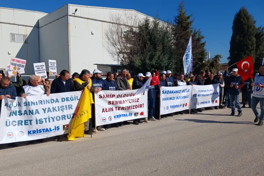 “97 işçi, patronun 32 bin 205 TL’lik teklifini kabul etmeyerek grev kararı aldı. Kristal-İş üyesi işçilerin talebi 36 bin 250 liraydı. İşverenle 11 defa oturulan toplu iş sözleşme masasından hiçbir sonuç alınamadı. Bu süreçte patron sık sık grev kırıcılığa başvurdu. Greve devam eden işçiler mücadelelerinden vazgeçmeyeceklerini belirterek OSB’ye sendika girene dek mücadelenin devam edeceklerini söylediler.”