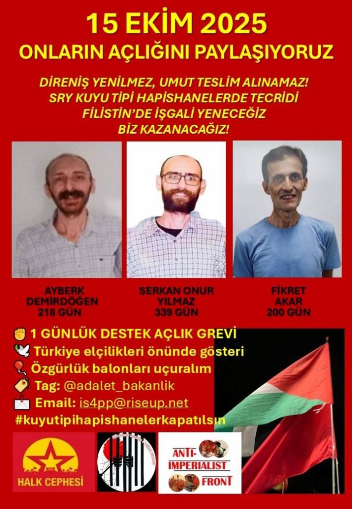 SRY Kuyu Tipi Hapishanelerde tecridi, Filistin’de işgali yeneceğiz!