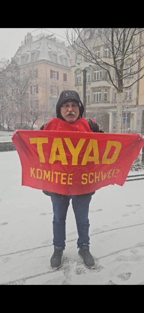 Her Cumartesi İsviçre’nin Zürich şehrinde kurulan stand, karlar altında yine kuruluyor. Bugün -7 derece demiyorlar. Çünkü kuyu tiplerdinde direniş, her koşulda sürüyor. Destek, sahiplenme, dayanışma, bunlar da HER KOŞULDA sürmeli.