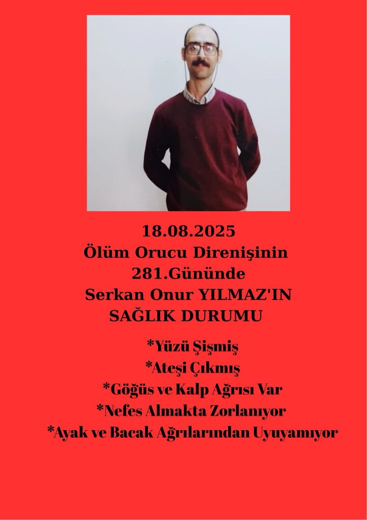 Serkan Onur Yılmaz, ölüm orucunun 281. gününde.