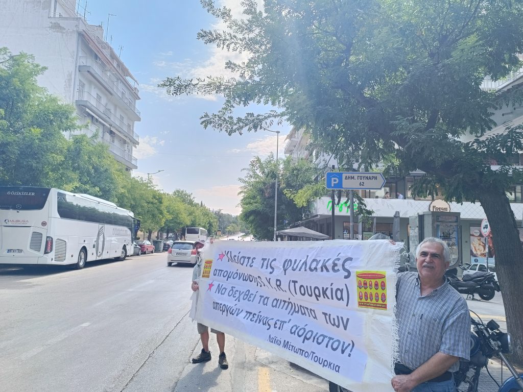 Kuyu tipi hapishanelere karşı sürdürülen ve ileri günlerine gelen Ölüm Orucu ve Süresiz Açlık Grevi eylemleriyle dayanışma amacıyla Selanik Türkiye konsolosluğu önünde bir eylem daha gerçekleştirildi.
