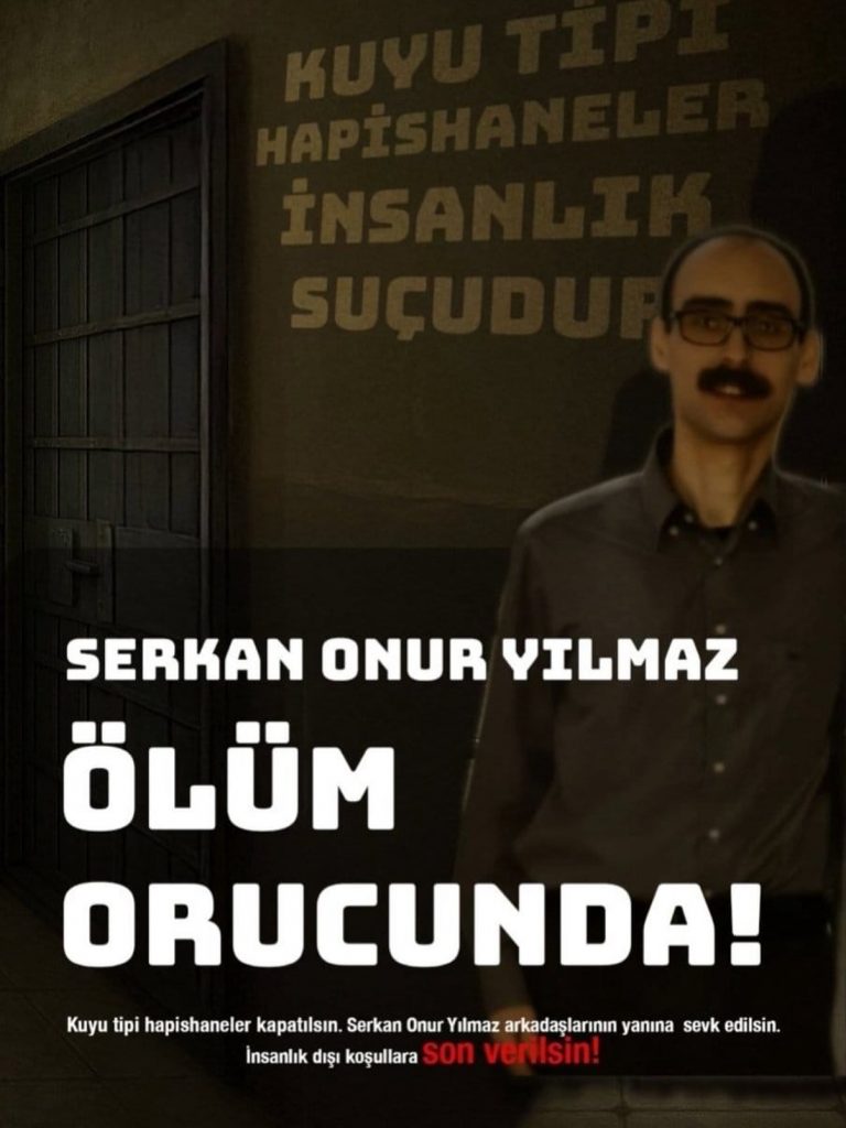 Direnişi sonucunda Bolu F Tipi Hapishanesi’ne sevk edilen Serkan Onur Yılmaz, Antalya Yüksek Güvenlikli S Tipi Hapishanesi’nde bulunan 8 arkadaşının da ‘kuyu tipi’ olmayan bir hapishaneye sevk edilmesi için başlattığı ölüm orucu eyleminin 302. gününde.