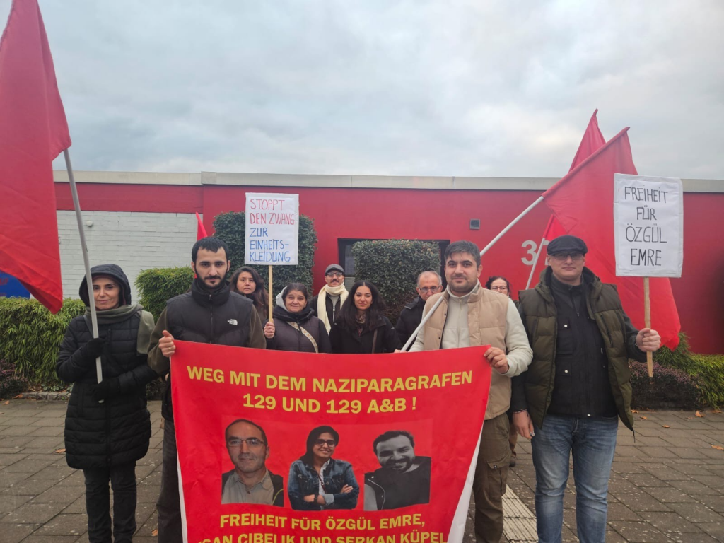 Özgül Emre’ye yapılan tek tip dayatmasına karşı yoldaşları haberi alır almaz tutsak edildiği Ossendorf hapishanesinin önünde bir eylem yaptı.