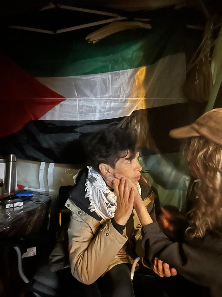 ZEHRA direniyor… FİLİSTİN direniyor… Bir direnişçi, direnen bir halkın bayrağının önünde tarihe güzellikler resmediyorlar…