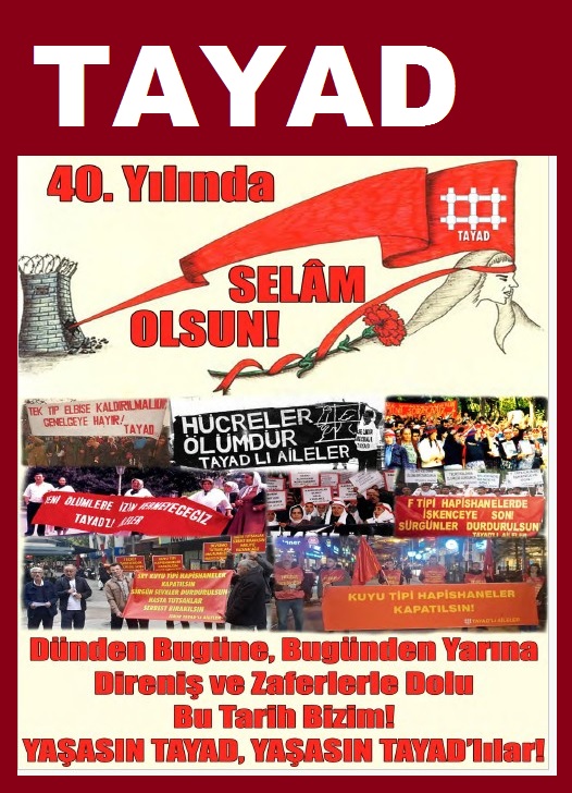 TAYAD, 40 yıldır tüm baskılara, baskınlara, kapatma kararlarına, işkencelere, tutuklamalara rağmen ayakta duran bir demokratik kitle örgütü.
