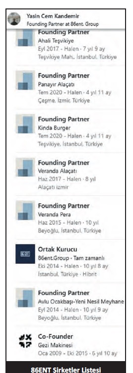Damadı, 86ENT isimli şirketin sahibi olarak, onlarca tesis ve ticarethanenin ortağıdır.