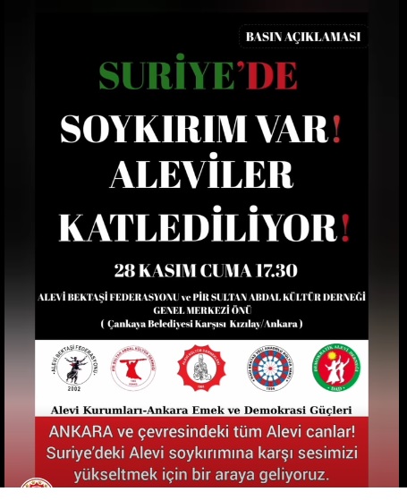 Ankara’da 28 Kasım’da Alevi katliamlına karşı bir yürüyüş ve açıklama gerçekleştirildi.
