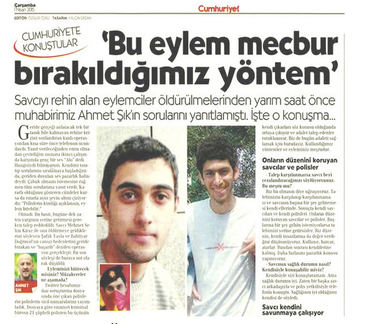 31 Mart 2015 Salı tarihli Cumhuriyet Gazetesinde yayınlanan yazıda, Ahmet Şık’ın soruları ve eylemcilerin cevapları: