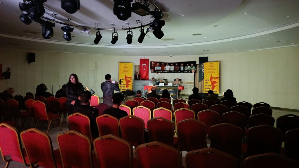 TAYAD ülkemiz gündemindeki S Y R , kuyu tipi hapishaneler konulu bir panel düzenleyeceğini duyurmuştu. 15 gündür çalışması yapıldı panelin. Bugün gerçekleştirilecek paneli polis türlü yöntemlerle taciz ederek engellemeye çalıştı. S Y R tipleri ile ilgili oluşturulan gündem ve duyarlılık AKP faşizmini ve polisini rahatsız ediyor. Bugün panelin gerçekleşeceği salona gelenlere kimlik kontrolü, engelleme ile başladı polis tacizi. Daha sonra Çankaya belediyesi de devreye girdi; paneli engellemek amacıyla elektriğini kesmek gibi ucuz ve asıl olarak faşizmin çaresizliğini ve basitliğini gösteren taciz devam etti. Taciz ve tehditlere rağmen panele engel olamadı polis. Panel şu an gerçekleşiyor.