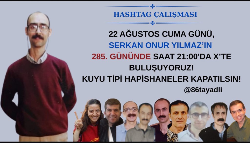 Serkan Onur Yılmaz’ın 285. gününde, 22 Ağustos Cuma günü saat 21:00’da hashtag çalışmamız olacak. Hepinizi katılmaya davet ediyoruz.
