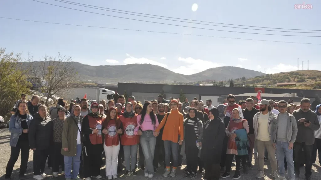 “Tokat’taki bu fabrikada sene başından beri işçiler düzenli maaş alamıyor. Her ay ücretler gecikti, son aşamada neredeyse üç aylık maaş içeride kaldı. Altı Ekim’de ödenecek denmişti, o gün de yatmayınca işçiler iş bıraktı. Yasal olarak da ücretleri geciktiği için işten kaçınma haklarını kullandılar. Yaklaşık bir haftadır bu eylem sürüyor.”