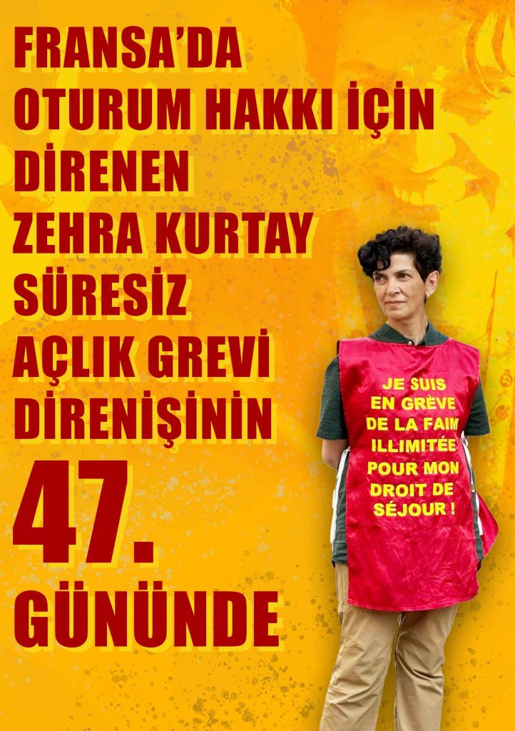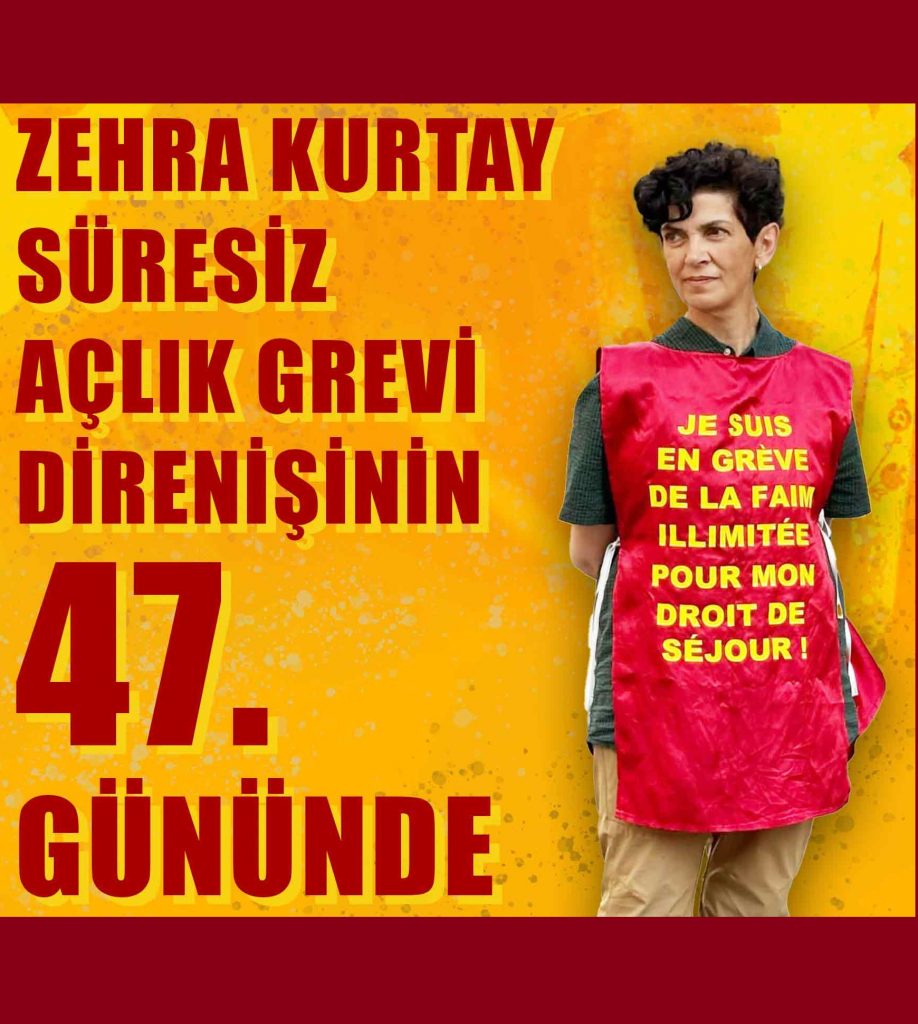 Ölüm orucu gazisi Zehra Kurtay’ın Fransız emperyalizminin keyfiliklerine ve tehditlerine karşı başlattığı süresiz açlık grevi 47. gününde.