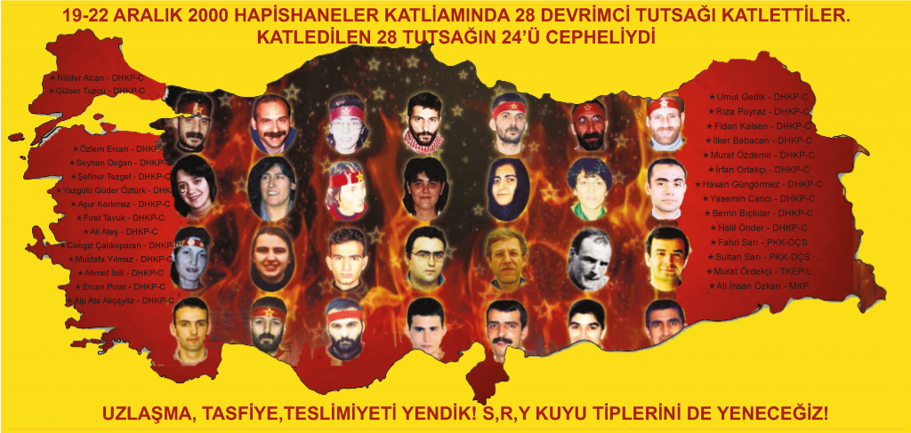 19 -22 Aralık 2000’de 20 hapishaneye birden saldırı düzenlendi. 28 devrimci tutsak katledildi. 24’ü Cepheli tutsaktı.