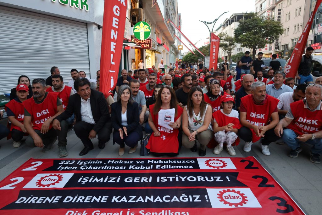 DİSK Genel-İş sendikasının ve atılan işçilerin çağrısıyla Feqiye Teyran Parkı’nda bir araya gelen işçiler, DİSK binasına kadar bir yürüyüş yaparak, yol boyunca sloganlarıyla taleplerini dile getirdiler.
