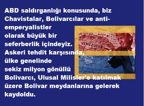 Ayrıca biliyoruz ki, ABD’nin iç politik gündeminden ve -öte yandan- savaşın ta kendisinin yüksek kârlılığından dikkatleri başka yöne çekmesi gerekiyor. Bu, Roosevelt’in ‘büyük sopa’ politikasının yeni bir uzantısı ; 21. yüzyılda bu agresif siyaseti yeniden devreye sokma, ABD’yi yeniden canlandırıp 21. yüzyıla yine ‘büyük sopa’yla yerleştirme hamlesidir. Amaç, küresel hegemonyasını sürdürme yeteneğini yitirdikçe, en azından bölgesel hegemonyasını korumak için, yalnızca Venezuela’yı değil, Latin Amerika ve Karayipler’deki egemen cumhuriyetleri de ABD’nin tasarrufu altına almaktır. Sanki yeni bir Yalta Anlaşması ya da nüfuz bölgelerinin yeniden paylaşımı gibi. Bu mesele yalnızca Venezuela ile ABD arasında değil; Venezuela’nın Bolivar’ın yürütüp kazandığı mücadele gibi yeni dünyaların şekillenmesinde belirleyici bir rol oynadığı, filizlenmekte olan yeni dünyanın küresel coğrafya ve güç dengelerine ilişkin bir meseledir.