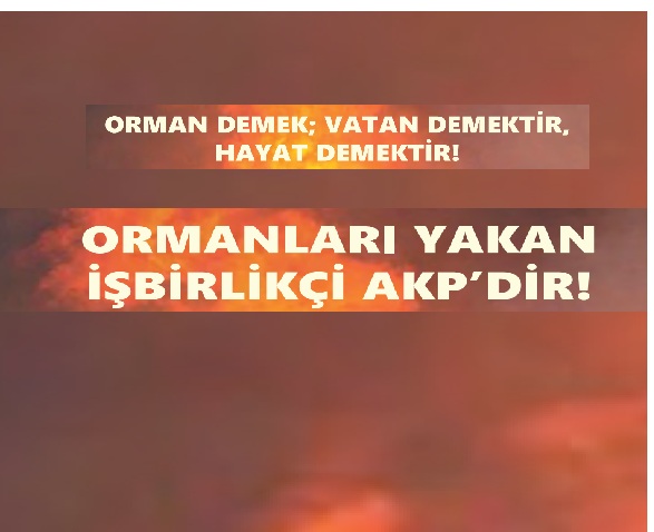 88 yılda 126 bin 268 orman yangını çıktı. Yılda orta-lama 1435 yangın çıkarken son 10 yılda her yıl ortalama 2732 orman yangını çıktı. Her yıl ormanlarımız 2732 kez yakılıyor. Sorumlusu vatanımızı emperyalist talana açan AKP faşizmidir.