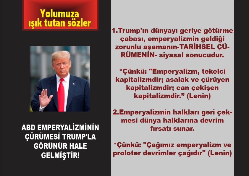 1.Trump’ın dünyayı geriye götürme çabası, emperyalizmin geldiği zorunlu aşamanın-TARİHSEL ÇÜRÜMENİN- siyasal sonucudur.
