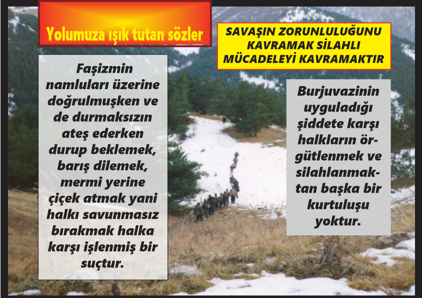 Burjuvazinin uyguladığı şiddete karşı halkların örgütlenmek ve silahlanmaktan başka bir kurtuluşu yoktur.