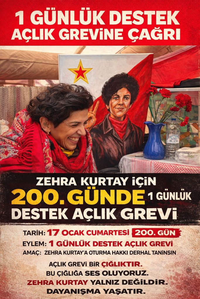 Zehra Kurtay, süresiz açlık grevinin 200. günü olan 17 Ocak Cumartesi günü için yaptığı çağrıda, herkesi 1 günlük destek açlık grevi yaparak yanında olmaya çağırdı.